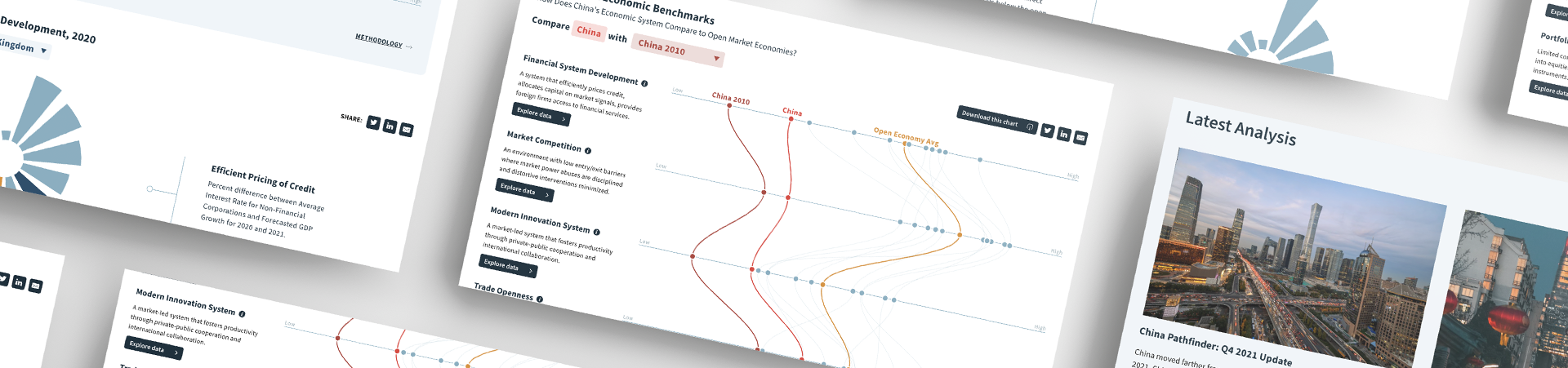 WE CREATED a data-driven microsite for The Atlantic Council Geoeconomics Center’s China Pathfinder initiative. The site features more than 30 custom data visualizations including a flagship dashboard visualization as well as visual deep dives into six financial indicators.